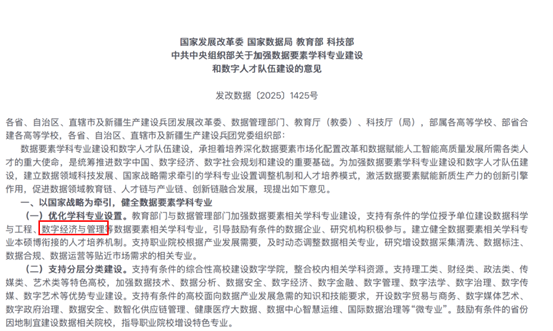 该学位点聚焦国家战略需求,积极对接国家发展改革委、国家数据局、教育部、科技部、中共中央组织部五部门联合印发的《关于加强数据要素学科专业建设和数字人才队伍建设的意见》有关部署,围绕数据要素“产学研用”全链条创新,构建“数字+经法管”深度融合的特色学科体系。重点布局数据要素市场化配置、数字金融与安全、产业数字化、数字贸易治理等研究方向,力争在数据要素基础理论、关键技术应用与治理实践等方面产出一批具有重要影响力的成果与案例。