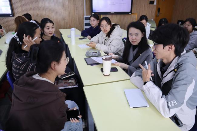 第一期课程以师生学术沙龙的形式开展。围绕“什么是科研”“学术前沿与热点领域”“AI对科研的影响与未来趋势”三大话题,学员们以小组形式展开热烈研讨。大家一致认为,科研是“发现问题——提出假设——验证结论——应用完善”的完整闭环;在谈及AI时,学员们既肯定其在文献梳理、效率提升等方面的重要作用,也客观指出AI幻觉、数据安全、思维依赖等潜在挑战。